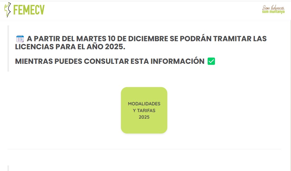 Con el fin de que los trámites se realicen de forma progresiva y que las personas que los primeros días del año realizan actividades deportivas, excursiones o competiciones, estén cubiertas por el seguro y puedan beneficiase de todas las ventajas federativas, se abre el plazo para la tramitación de las licencias federativas 2025.
